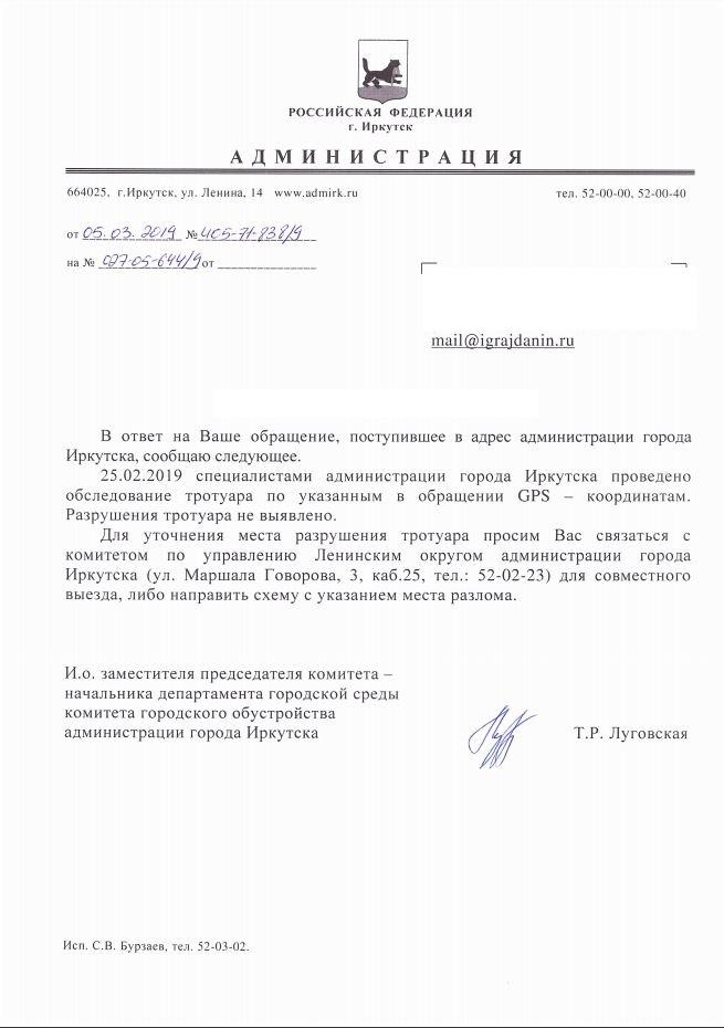 айГражданинОтправлено 07.02.2019: "Администрация города Иркутска"