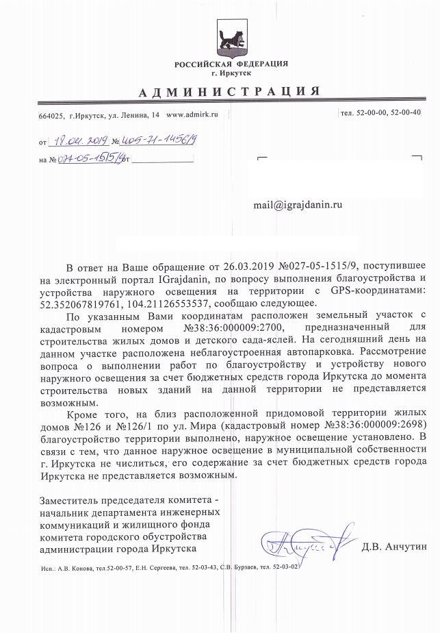 айГражданинОтправлено 22.03.2019: "Администрация города Иркутска"