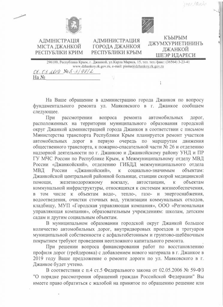 айГражданинОтправлено 11.02.2019: "Администрация города Джанкоя республики Крым"
