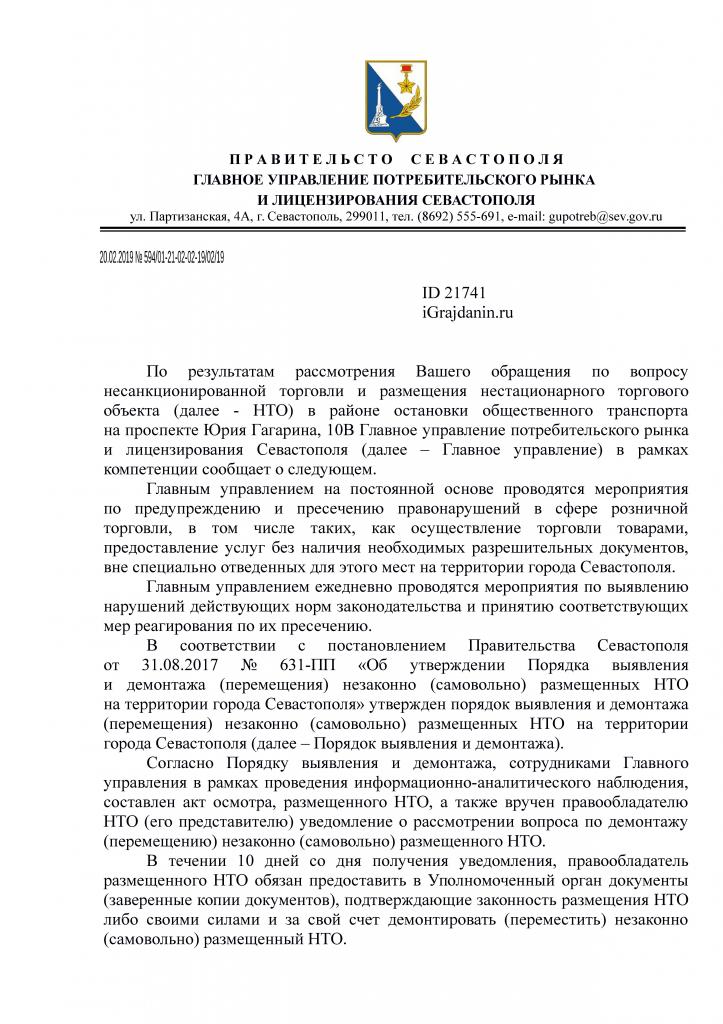 айГражданин Отправлено 11.02.2019: "Главное управление потребительского рынка и лицензирования города Севастополя"