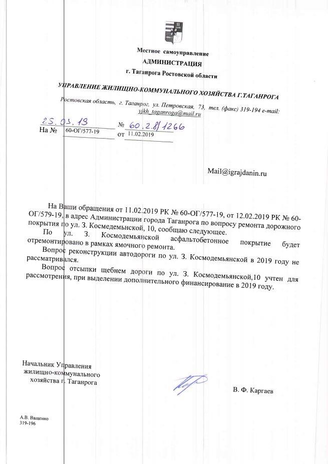 айГражданинОтправлено 11.02.2019: "Администрация города Таганрога"