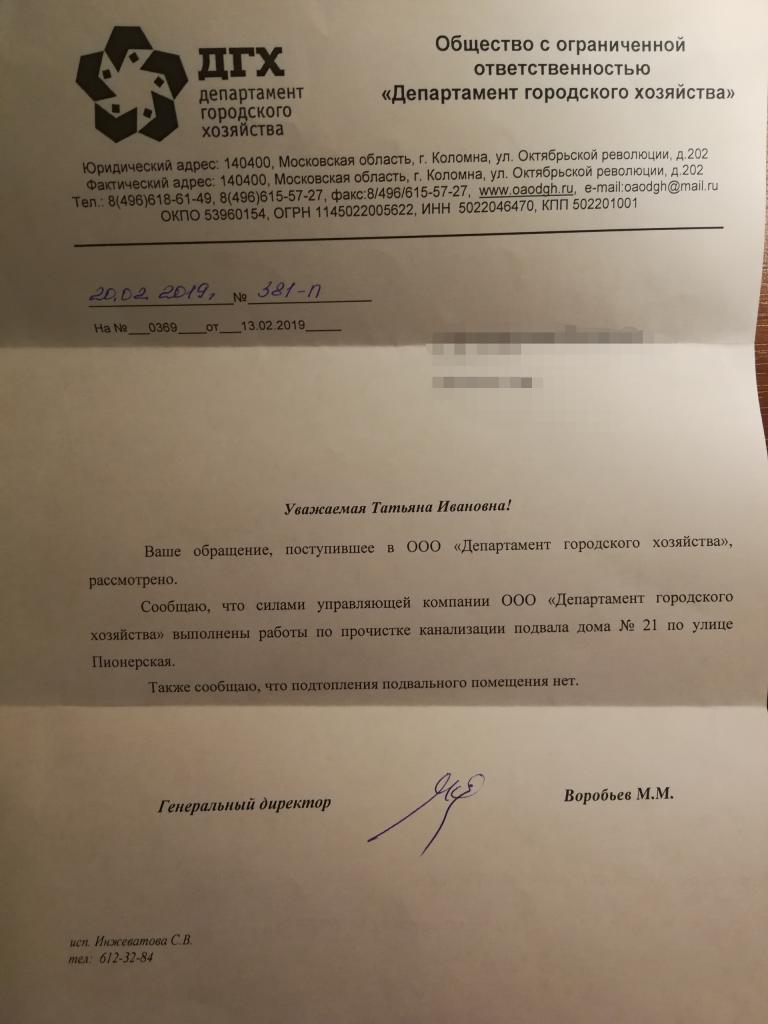айГражданинОтправлено 12.02.2019: "УК "ДГХ" г. Коломна"