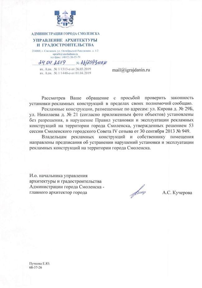 айГражданинОтправлено 25.03.2019: "Администрация города Смоленска"