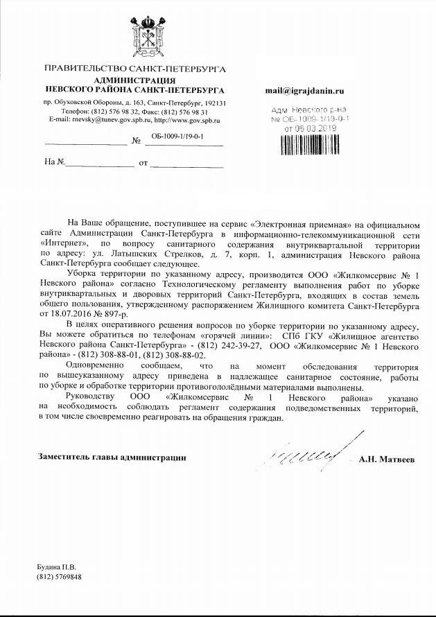 айГражданинОтправлено 12.02.2019: "Администрация Невского района Санкт-Петербурга"