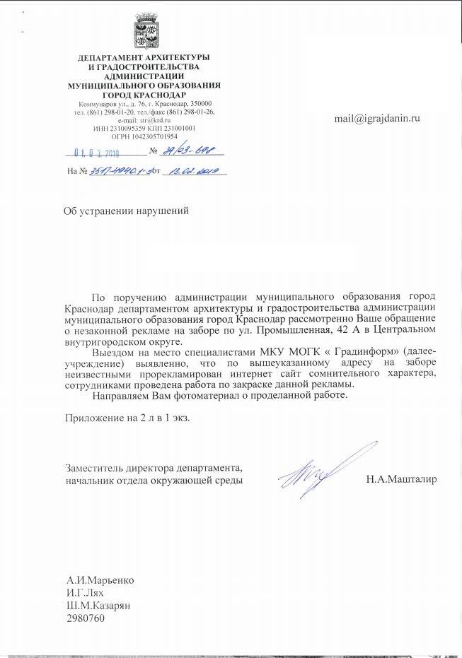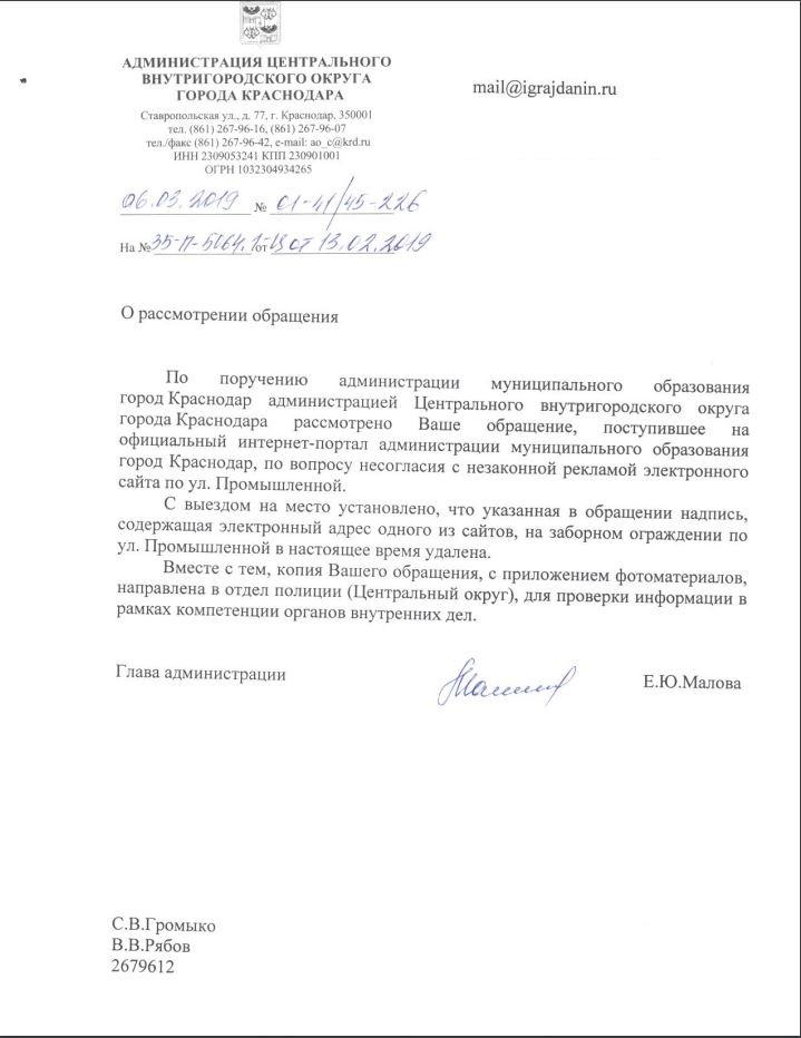 айГражданинОтправлено 12.02.2019: "Администрация муниципального образования г. Краснодар"