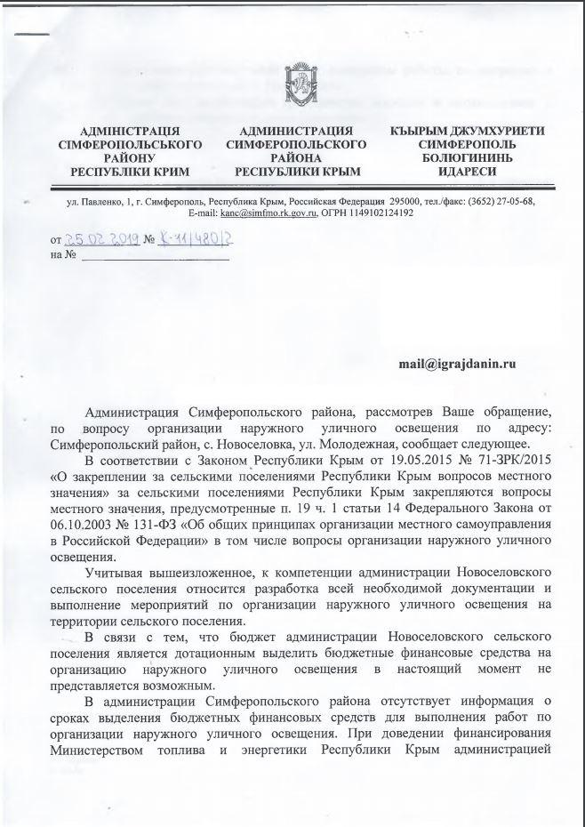 айГражданинОтправлено 13.02.2019: "Администрация Симферопольского района республики Крым"