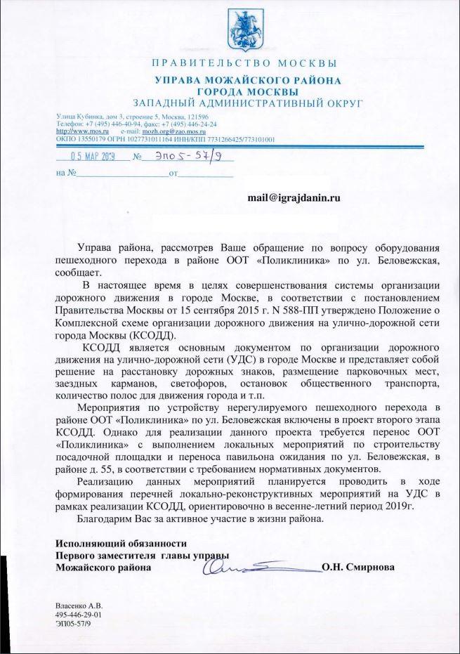 айГражданинОтправлено 15.02.2019: "Управа Можайского района города Москвы"