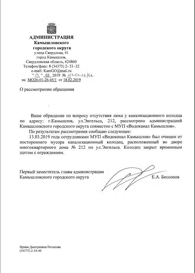 айГражданинОтправлено 15.02.2019: "Администрация Камышловского городского округа Свердловской области"