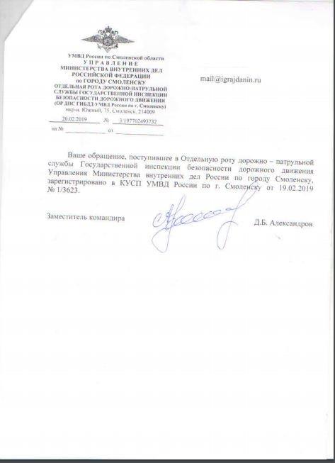 айГражданинОтправлено 18.02.2019: "УГИБДД УМВД России по Смоленской области"