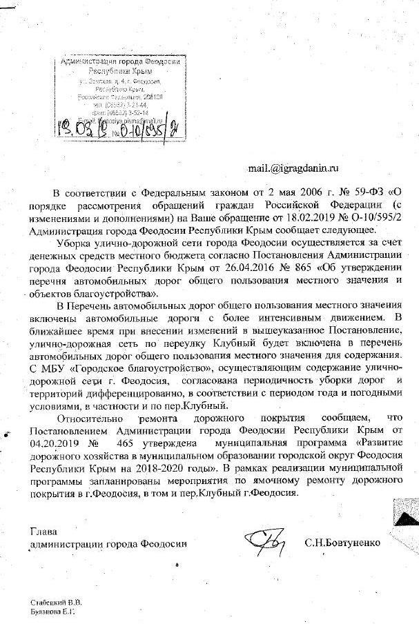 айГражданинОтправлено 18.02.2019: "Администрация города Феодосии республики Крым"