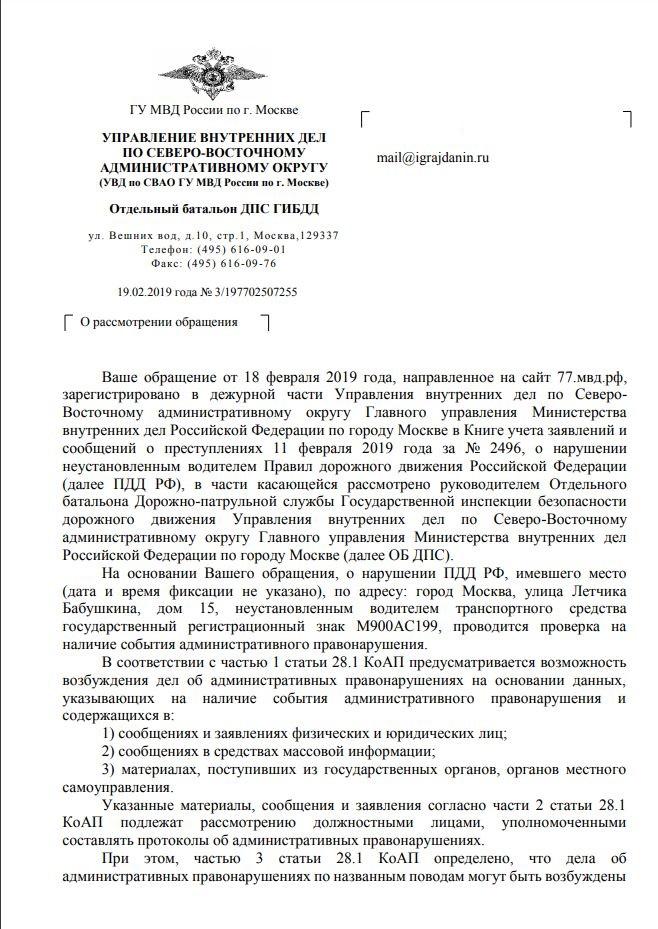 айГражданинОтправлено 18.02.2019: "Управление ГИБДД ГУ МВД России по г. Москве"