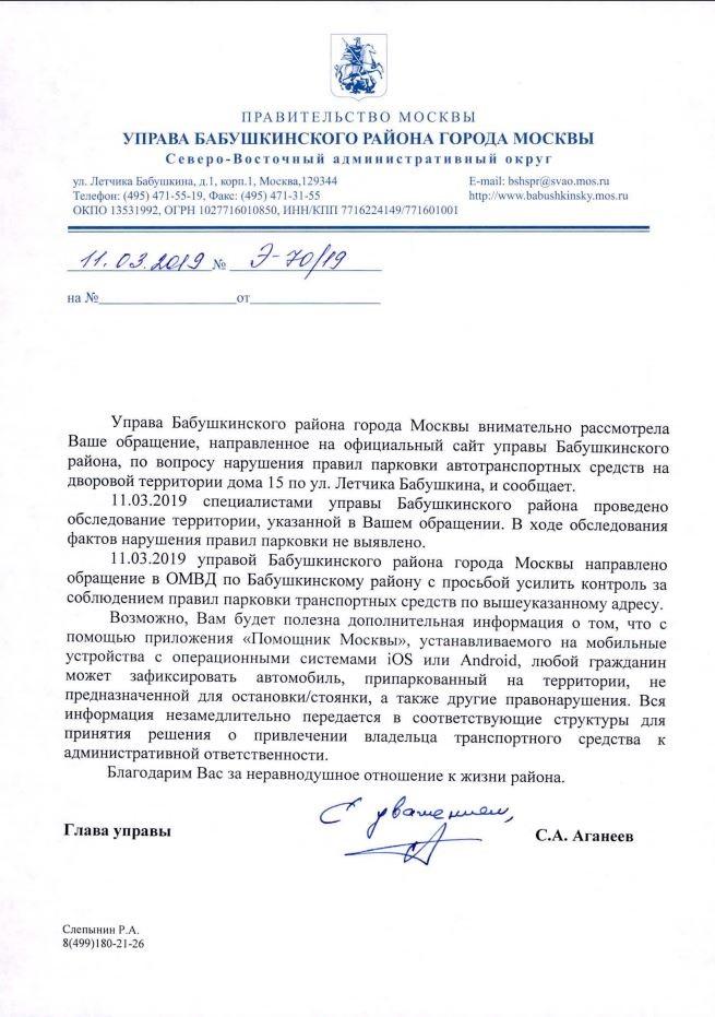 айГражданинОтправлено 18.02.2019: "Управа Бабушкинского района города Москвы"
