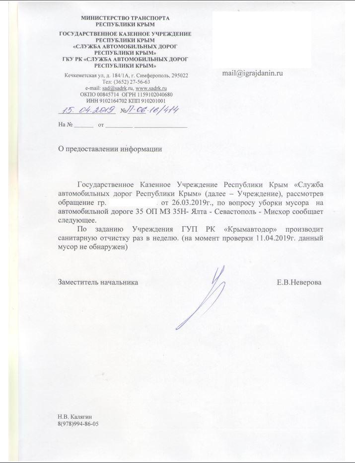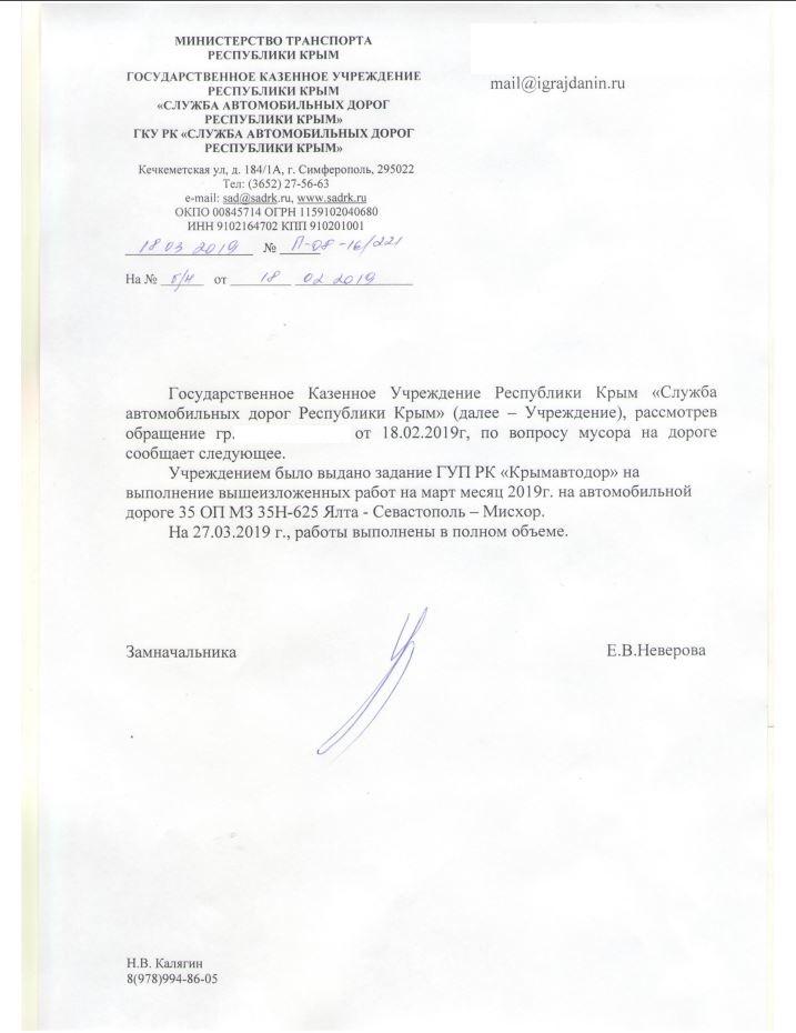 айГражданинОтправлено 26.03.2019: "Служба автомобильных дорог Республики Крым"