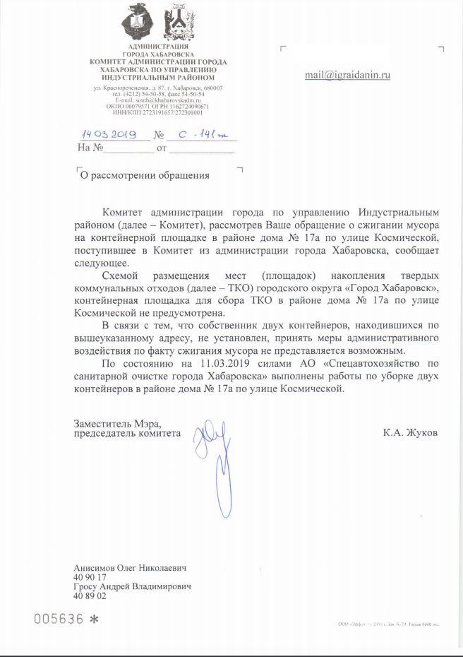 айГражданинОтправлено 18.02.2019: "Администрация города Хабаровска"