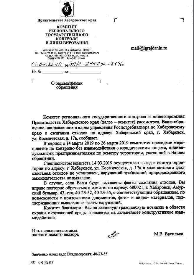 айГражданинОтправлено 18.02.2019: "Управление Роспотребнадзора по Хабаровскому краю"