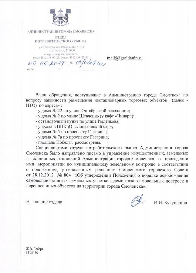 айГражданинОтправлено 09.04.2019: "Администрация города Смоленска"