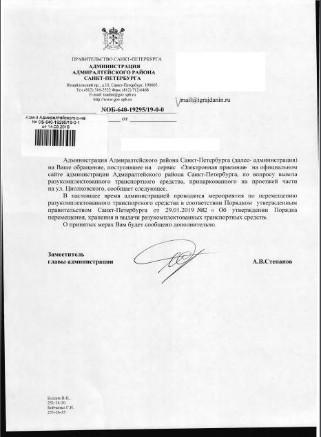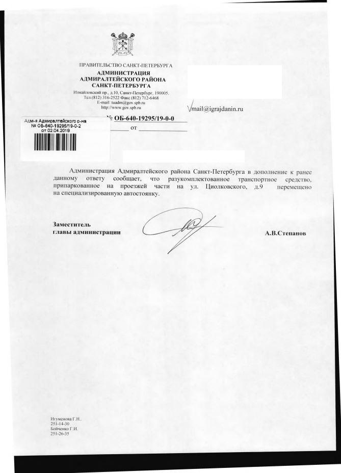 айГражданинОтправлено 18.02.2019: "Администрация Адмиралтейского района Санкт-Петербурга"