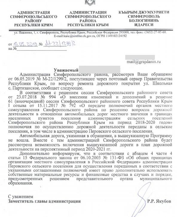 айГражданинОтправлено 21.04.2019: "Администрация Симферопольского района республики Крым"