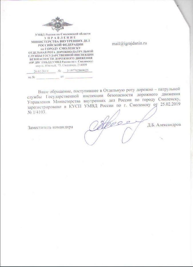 айГражданинОтправлено 25.02.2019: "УГИБДД УМВД России по Смоленской области"
