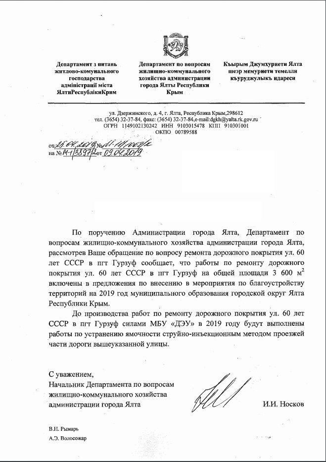 айГражданинОтправлено 09.04.2019: "Администрация города Ялты республики Крым"