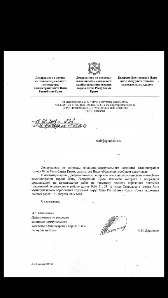 Отправлено 07.07.2019: "Администрация города Ялты республики Крым"