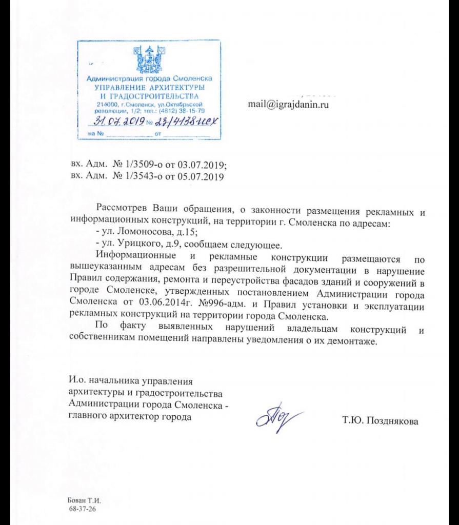 айГражданинОтправлено 04.07.2019: "Администрация города Смоленска"