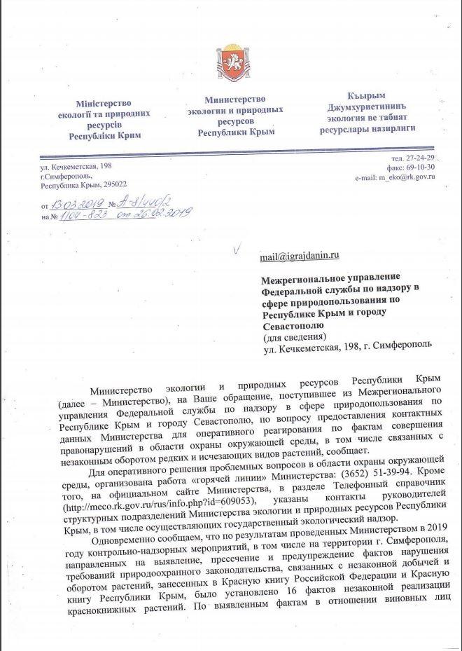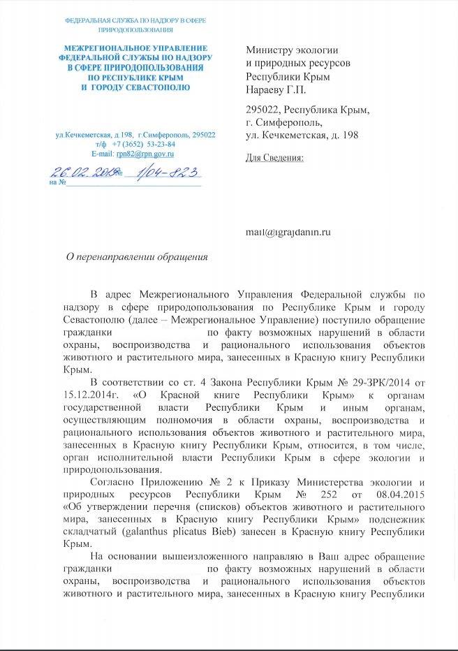 айГражданинОтправлено 25.02.2019: "Межрегиональное Управление Росприроднадзора по Республике Крым и г. Севастополю"