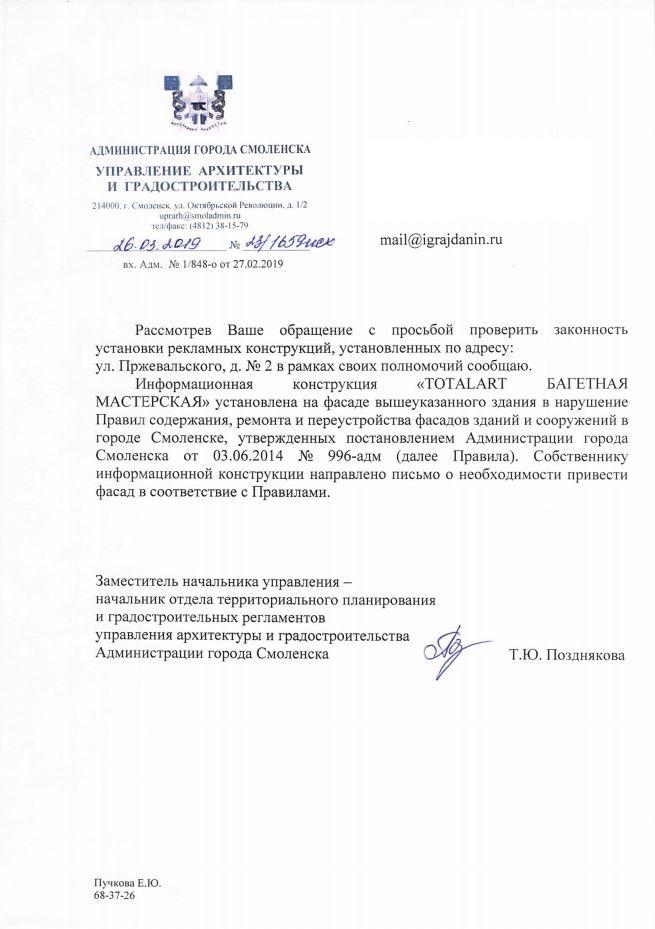 айГражданинОтправлено 27.02.2019: "Администрация города Смоленска"