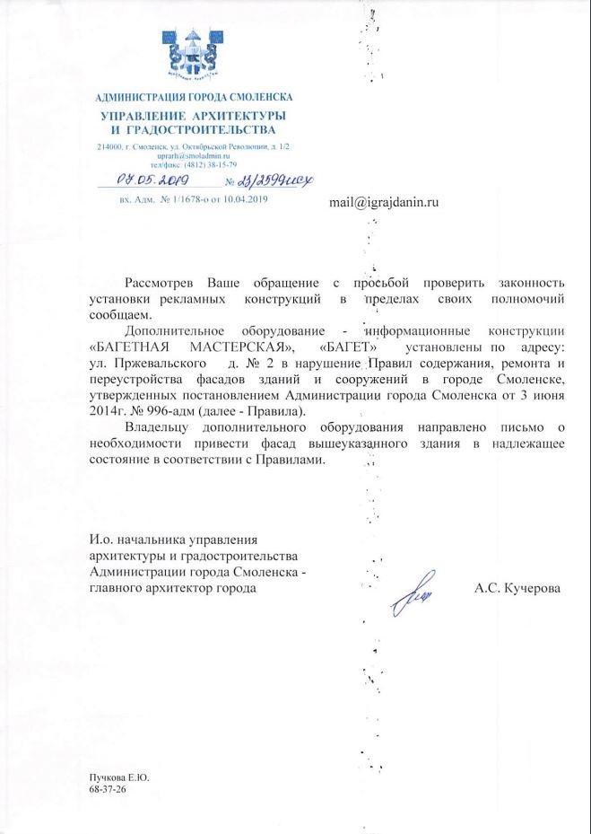 айГражданинОтправлено 09.04.2019: "Администрация города Смоленска"