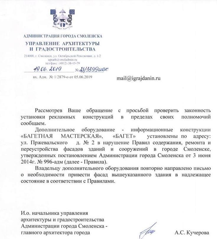 айГражданинОтправлено 05.06.2019: "Администрация города Смоленска"