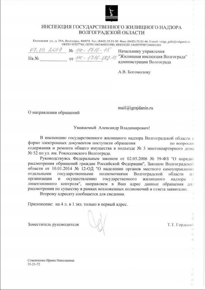 айГражданинОтправлено 27.02.2019: "Инспекция государственного жилищного надзора Волгоградской области"