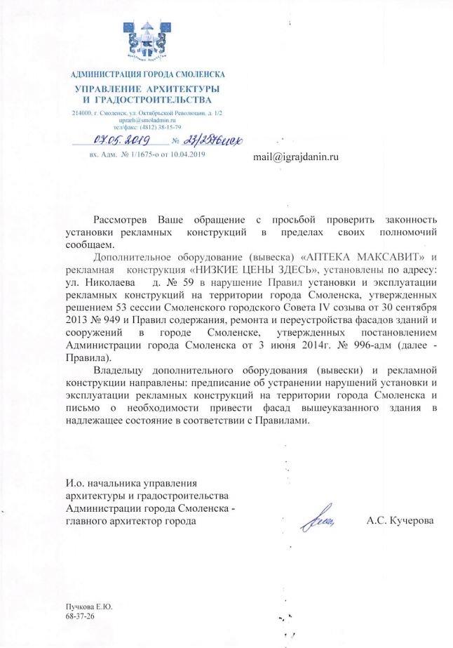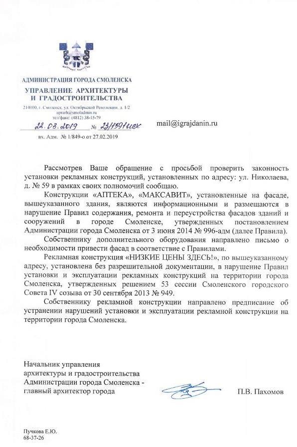 айГражданинОтправлено 22.05.2019: "Администрация города Смоленска"