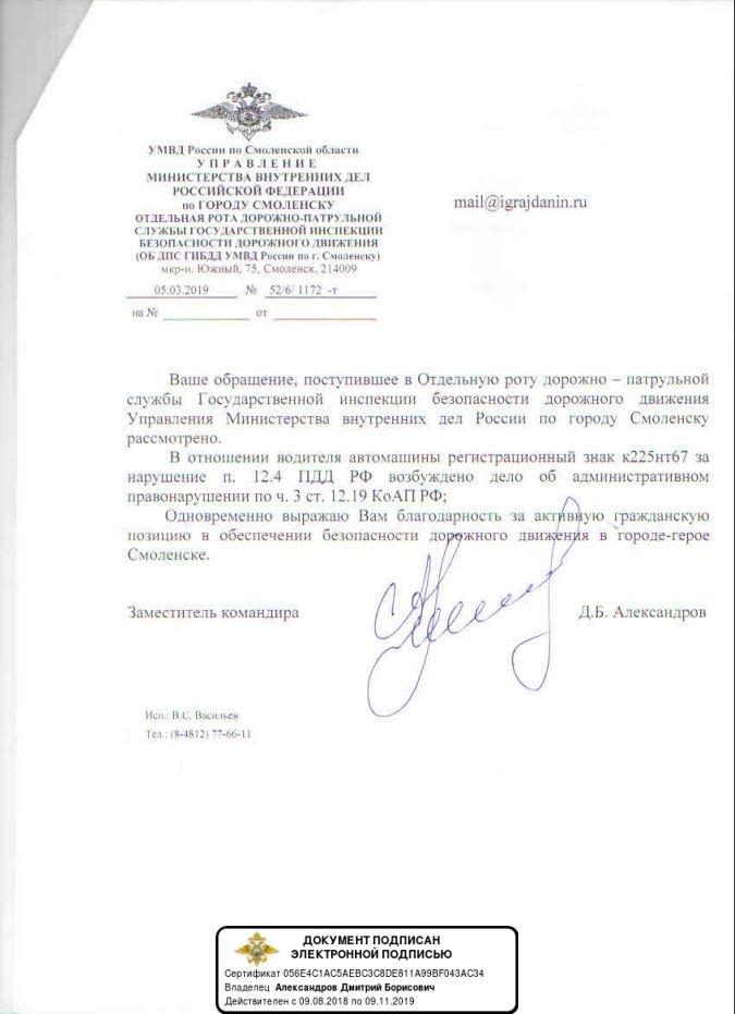 айГражданинОтправлено 01.03.2019: "УГИБДД УМВД России по Смоленской области"