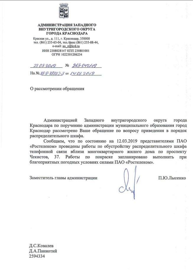 айГражданинОтправлено 01.03.2019: "Администрация муниципального образования г. Краснодар"