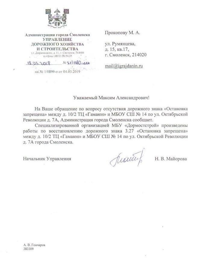 айГражданинОтправлено 01.03.2019: "Администрация города Смоленска"