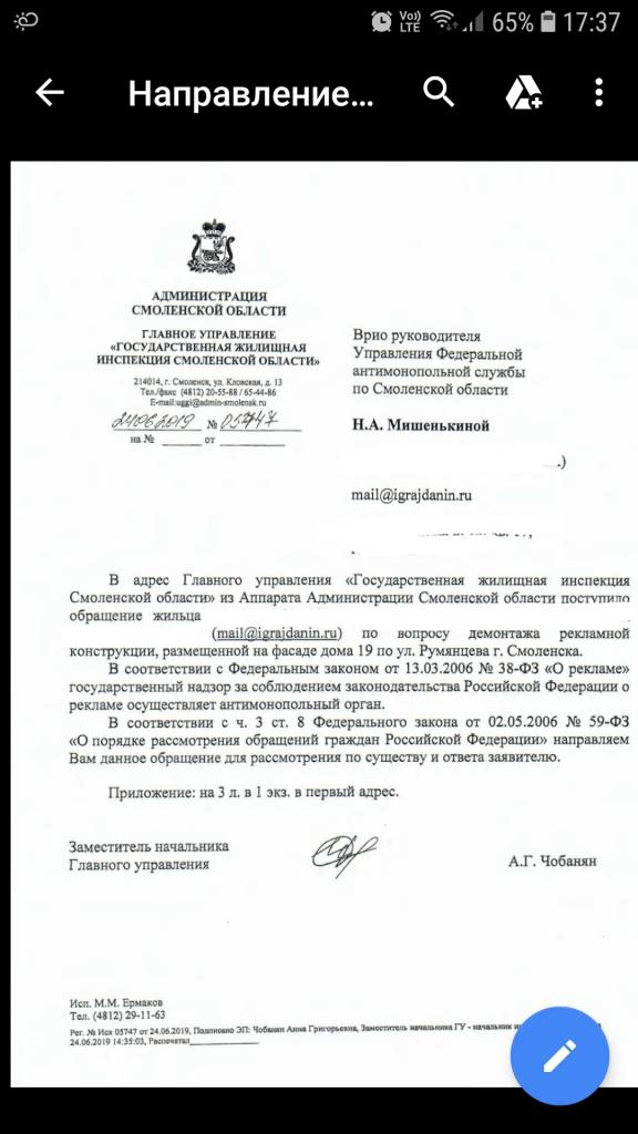 айГражданинОтправлено 19.06.2019: "Администрация Смоленской области"