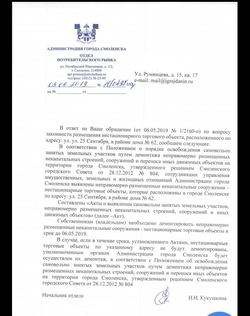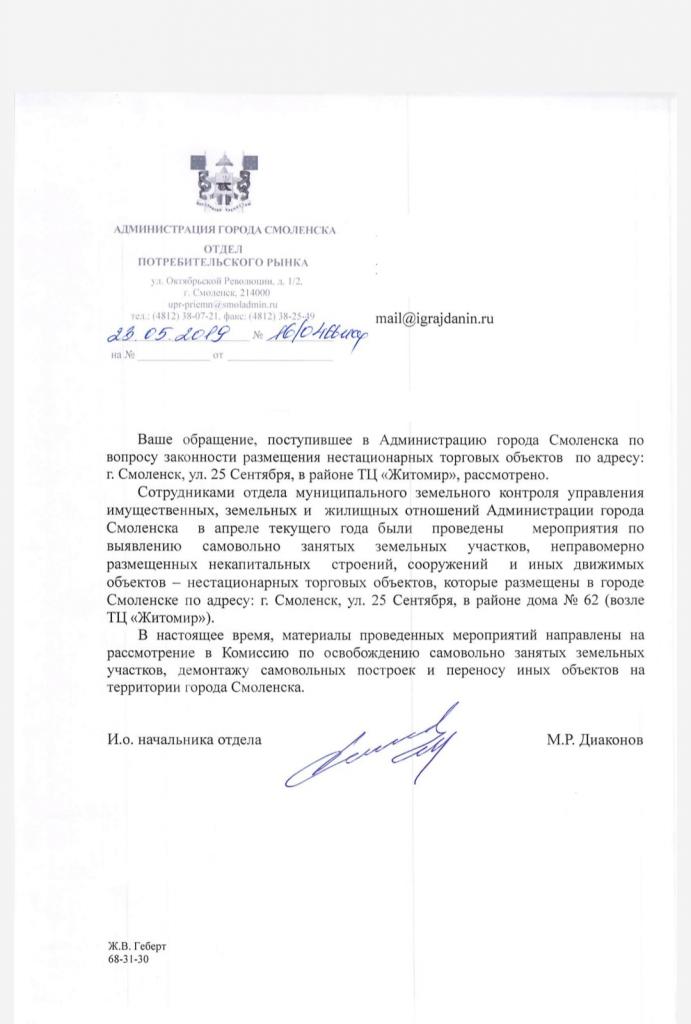 айГражданинОтправлено 22.05.2019: "Администрация города Смоленска"