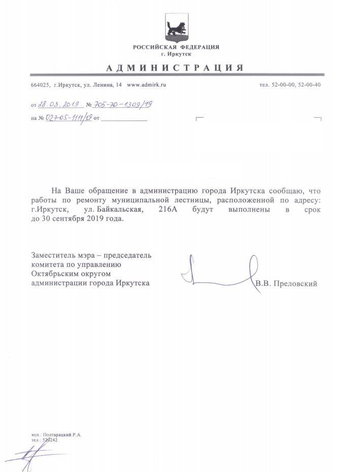 айГражданинОтправлено 04.03.2019: "Администрация города Иркутска"