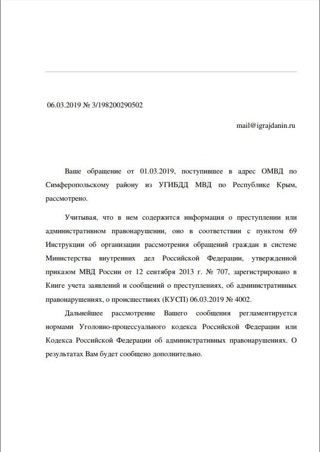 айГражданинОтправлено 01.03.2019: "Управление ГИБДД МВД по Республике Крым"