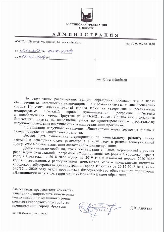 айГражданинОтправлено 04.03.2019: "Администрация города Иркутска"