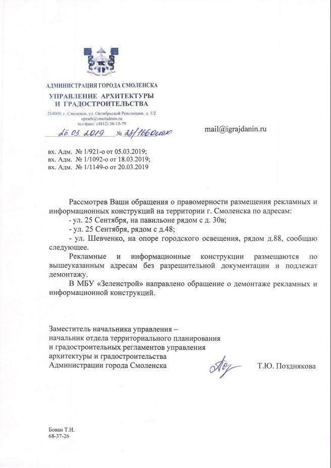 айГражданинОтправлено 04.03.2019: "Администрация города Смоленска"