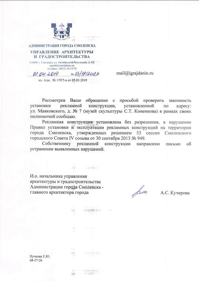 айГражданинОтправлено 04.05.2019: "Администрация города Смоленска"