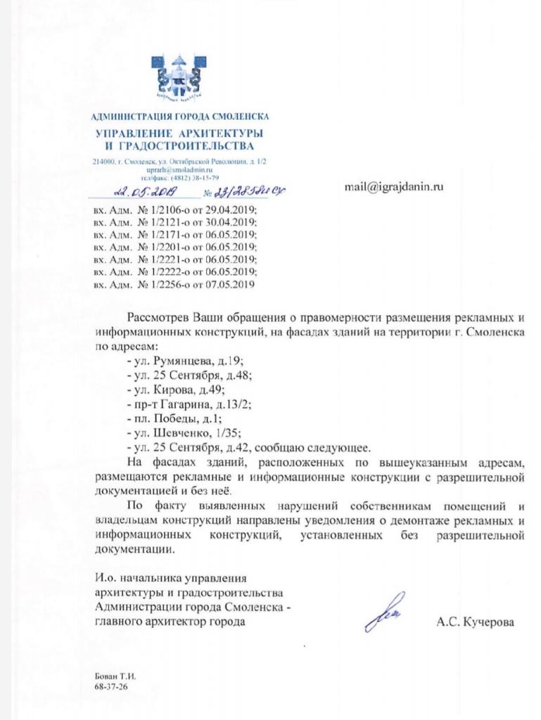 айГражданинОтправлено 28.06.2019: "Администрация города Смоленска"