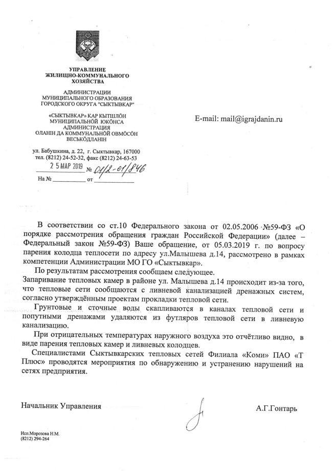 айГражданинОтправлено 05.03.2019: "Администрация МО городской округ Сыктывкар"