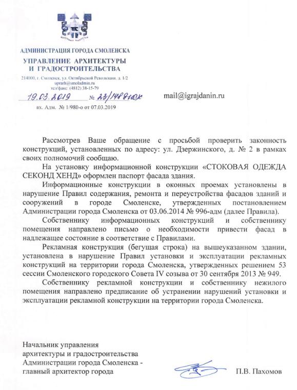 айГражданинОтправлено 06.03.2019: "Администрация города Смоленска"