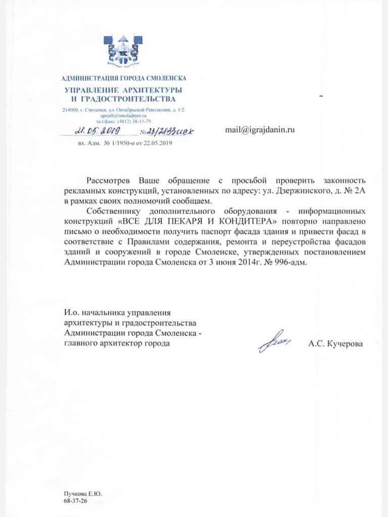 Отправлено 19.04.2019: "Администрация города Смоленска"
