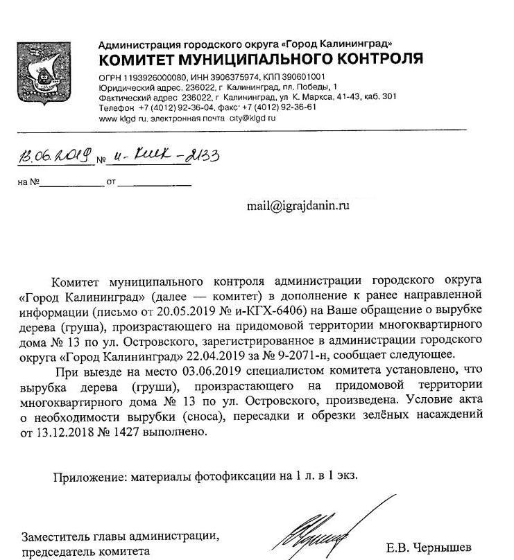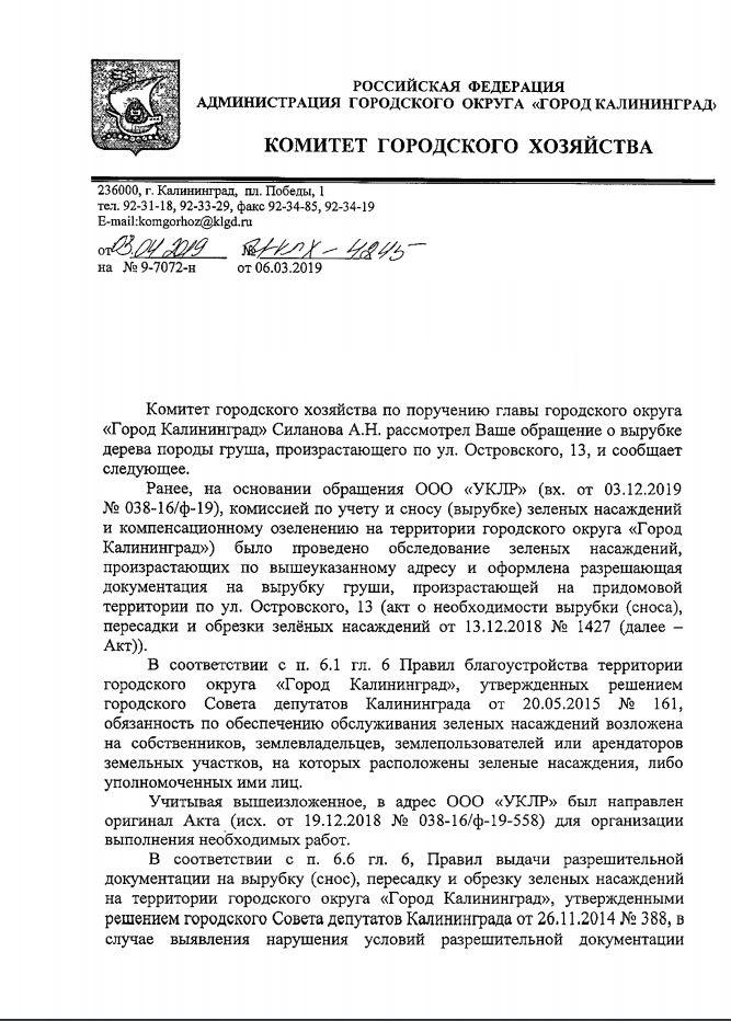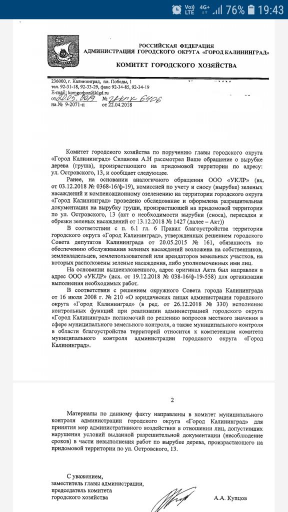 айГражданинОтправлено 19.04.2019: "Администрация городского округа Калининград"