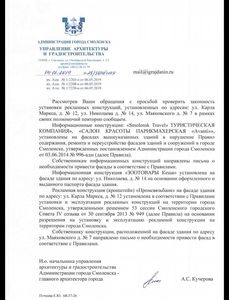айГражданинОтправлено 04.05.2019: "Администрация города Смоленска"
