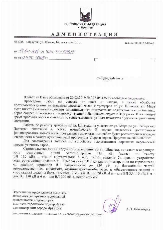 айГражданинОтправлено 15.03.2019: "Администрация города Иркутска"