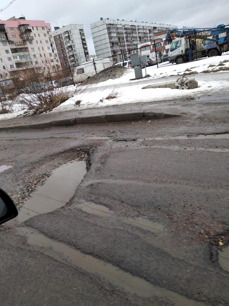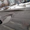 Сильно разбито дорожное покрытие. Люди выезжают на встречную полосу.